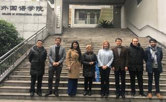 2019年12月3日,阿根廷国立科尔多瓦大学(Universidad Nacional de Córdoba,简称UNC) 国际事务副校长米莉安·阿丽西亚·卡瓦略,语言学院院长艾雷娜·德·卡门·佩雷斯,法律顾问阿古斯汀·萨维斯一行,由国际处交流科科长王骏同志的陪同,前往学院我院观摩三位西班牙语老师课堂教学并与我院商谈教研合作。76net必赢官网副院长胡显耀教授代表76net必赢官网对阿根廷国立科尔多瓦大学代表团的来访表示欢迎,并从发展历史、学院概况、师资力量、学科优势、学生工作、国际交流等方面对76net必赢官网进行了较为详细的介绍。阿根廷国立科尔多瓦大学代表团介绍了该校及其76net必赢官网主要情况,双方重点就建立拉丁美洲语言文化研究中心的学科及学术定位、重点领域、人员配备、运作机制和经费来源等进行了深入的交流与商讨,并一致决定以双方互派交换教师的方式尽早启动中心的建设工作。