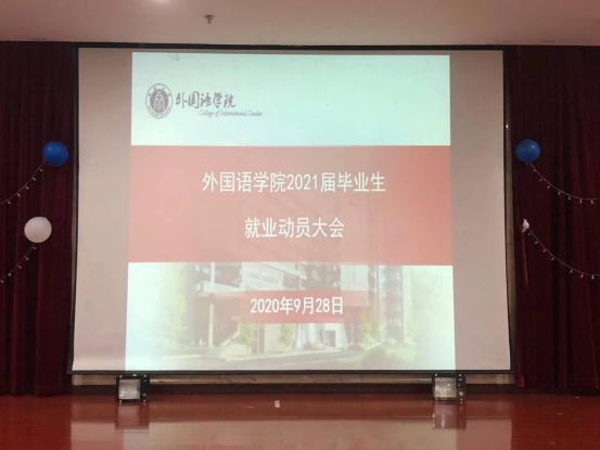 9月28日18时,76net必赢官网2021届毕业生就业动员大会在101报告厅成功举办。出席本次大会的院领导及老师有:76net必赢官网院长文旭教授,党委副书记、纪委书记滕超老师,党委副书记李晓畅老师,体育学院组织员、西南大学生涯咨询师李进老师,本科毕业年级辅导员曹灿老师、夏小燕老师以及研究生毕业年级辅导员向源老师。本次会议由李晓畅副书记主持,2021届全体毕业生参加了本次就业动员大会。