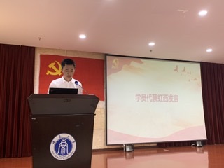 接着,学院本科2019级英语(师范)专业学生蔡虹西作学员代表发言。他与大家一同回顾了抗“疫”过程中广大党员立足岗位,深入一线,为人民生命健康奋勇拼搏的感人事迹。他指出,参加党校培训,积极向党组织靠拢,既是个人的需求,也是时代的召唤;虽然在向组织靠拢的过程中可能充满困难和挑战,但只要树立远大理想,做到心中有党,定能顺利抵达胜利的彼岸。