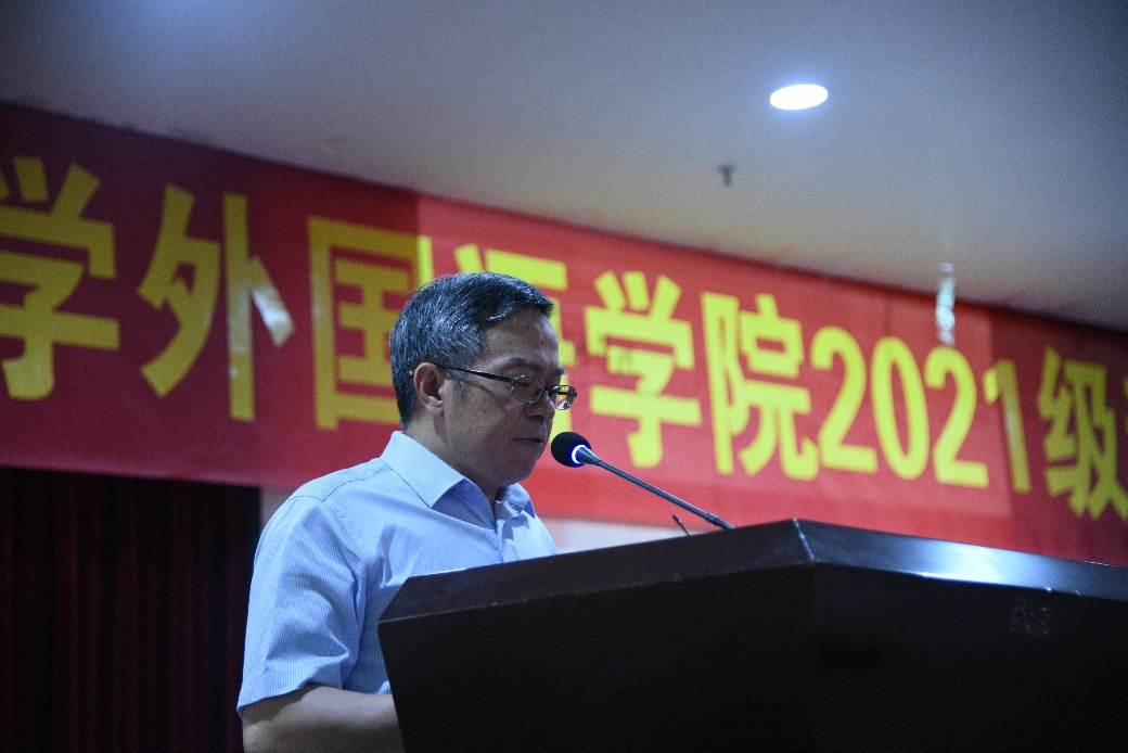 院长文旭教授发表讲话,在热烈欢迎同学们来到外院的同时,也向同学们提出了三个重要要求:讲政治、懂规矩、守纪律。文旭院长也强调了,大学是学习知识发展自我能力的地方,而不是吃喝享乐的场所。进西大容易,毕业却困难。同学们应该在大一就对自己严格要求,到外院来“吃苦”,到外院来磨炼自己,到外院来增加才干。