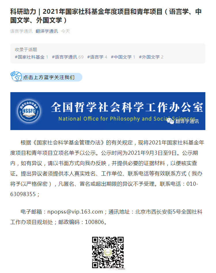 热烈祝贺胡显耀、李文山、王惠静三位老师获得2021年国家社科基金年度项目和青年项目(语言学、中国文学、外国文学)立项