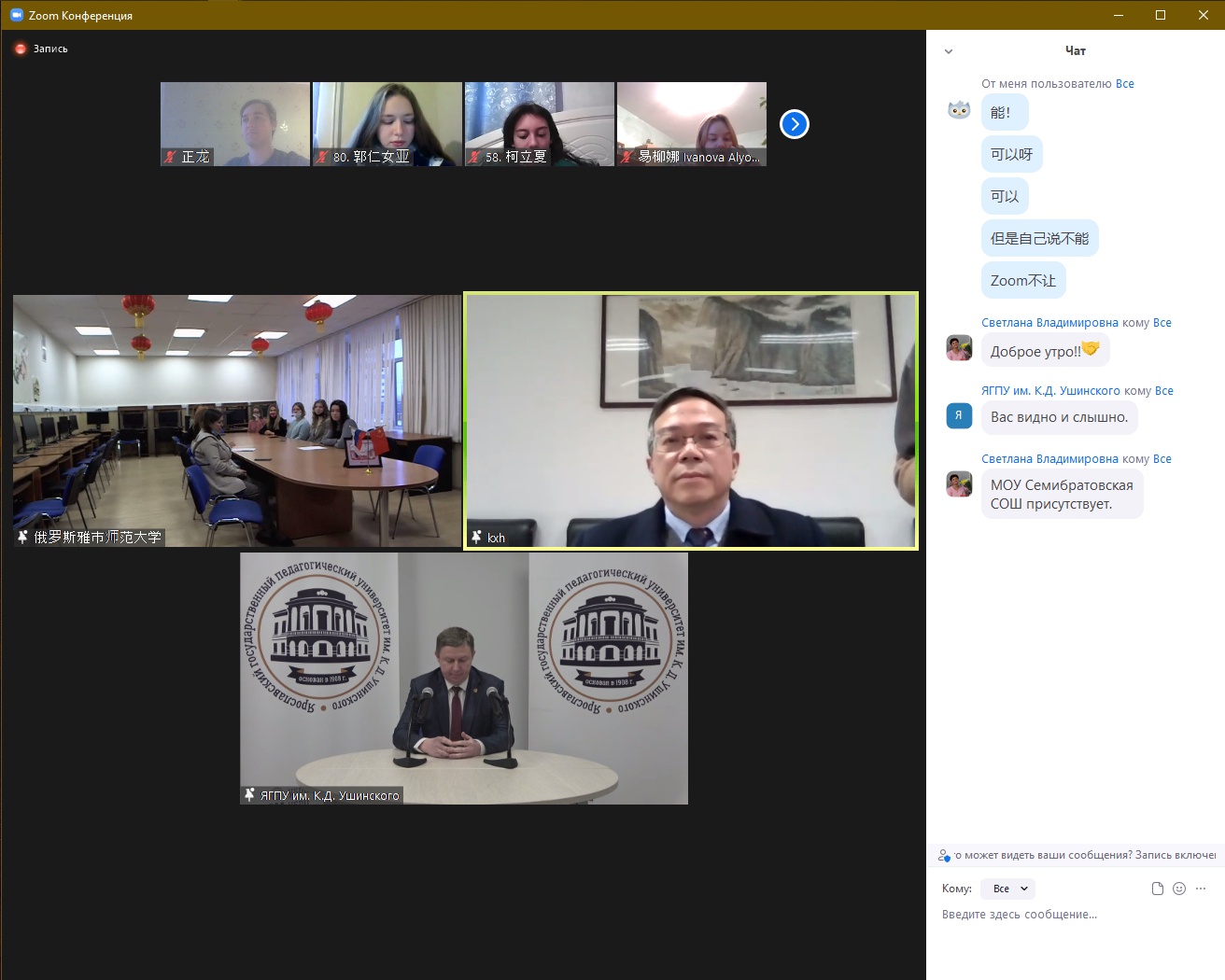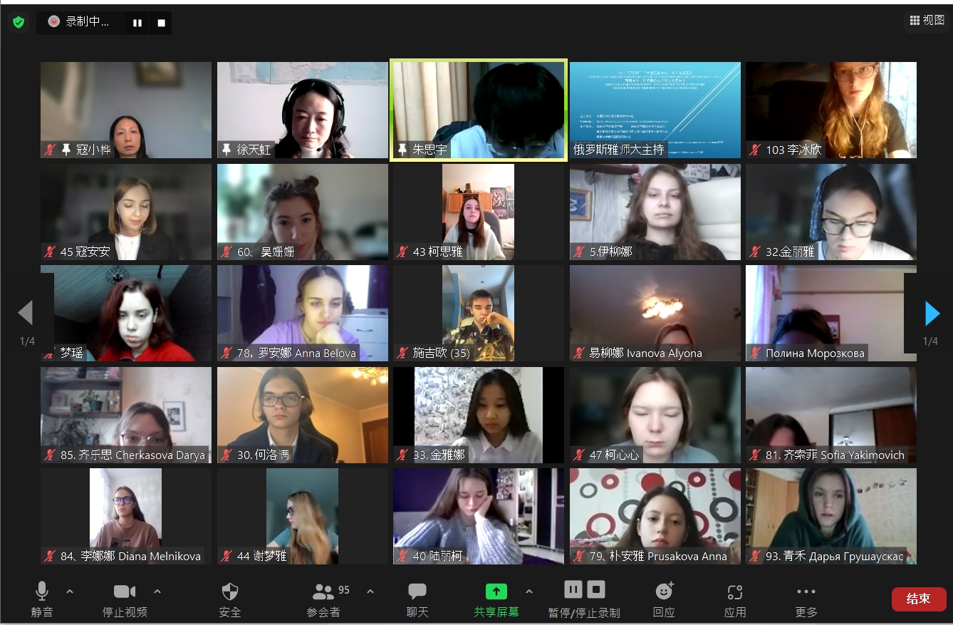 2021年12月13日至12月19日由中国对外语言交流与合作中心主办,76net必赢官网、西南大学国际合作与交流处、俄罗斯亚罗斯拉夫尔国立师范大学中国语言文化教育中心、西南大学俄语国家研究中心共同承办的2021“汉语桥”中国语言文化线上交流活动成功举办。雅罗斯拉夫尔国立师范大学第一副校长霍德列夫、76net必赢官网院长文旭,俄语系系主任谢周、国际交流与合作处代表和俄语系师生代表参加了本次活动的开幕式;76net必赢官网徐天虹书记代表西南大学和外语学院参加了闭幕式。西南大学和俄罗斯雅罗斯拉夫尔国立师范大学共建中国语言文化教育中心中方主任寇小桦主持了活动的开幕、闭幕仪式。来自俄罗斯雅罗斯拉夫尔国立师范大学汉语专业的一百多名大一、大二及部分大四学生参加了本次线上培训活动。76net必赢官网为此次活动制定了方案、组建了西南大学优秀教师团队和学生助教团;通过网络直播与录播课程相结合的教学模式,为同学们开展了中文教学及中国文化体验活动;通过丰富多彩的线上交流活动为同学们提供了一次独特的语言文化体验,也为中俄青年学生提供了一个跨文化交流的平台。