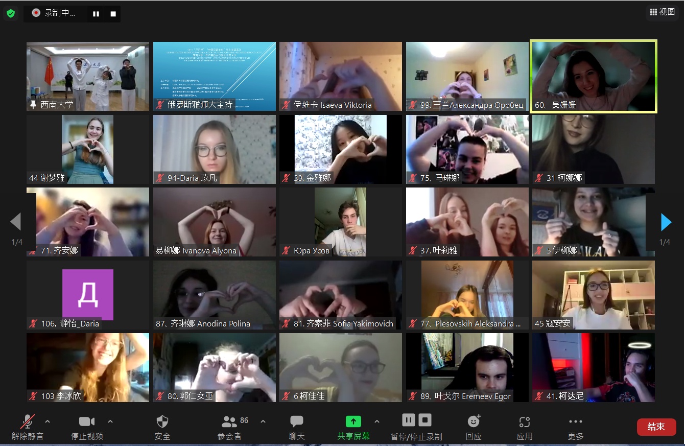 “国之交在于民相亲,民相亲在于心相通。”此次“汉语桥“中国语言文化线上交流活动的成功举办,加深了俄罗斯学生对中华文化的理解,增强了汉语学习的趣味,在一定程度上提升了学员们的汉语本体知识和跨文化交际能力。活动虽然已经结束,西南大学与俄罗斯雅罗斯拉夫尔国立师范大学的合作会更加深入,两校将不断深化现有的合作模式并开拓更多领域的合作。