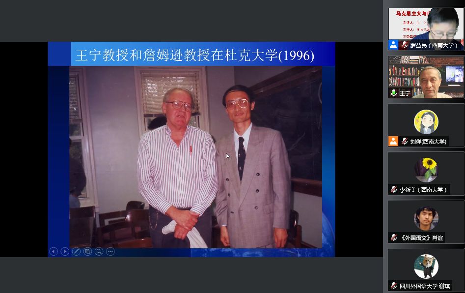 2022年6月27日19:00到21:00,上海交通大学人文学院院长、人文社会科学资深教授、欧洲科学院外籍院士王宁教授应76net必赢官网邀请,作了题为“马克思主义与世界文学研究”的腾讯会议在线讲座。76net必赢官网博士生导师、博士生教研室主任、重庆市人文社科重点研究基地西南大学外国语言学研究中心副主任罗益民教授主持了本次讲座。本次讲座是76net必赢官网主办的“名家学术讲座论坛·文学”讲座系列第三讲,国内多所高校专家、学者及硕、博士生聆听了讲座。