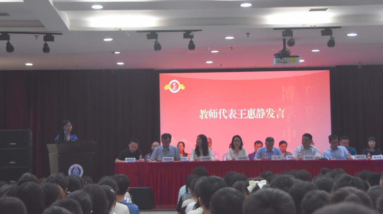 教师代表王惠静用全英文作了发言。她以“对新生的期待”为题做了寄语,提醒同学们做好学业规划,积极锻炼听说读写的能力,相信未来光明之路定会在同学们的脚下徐徐铺展!