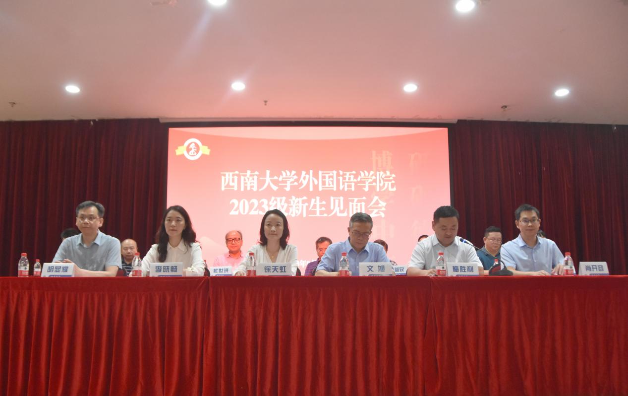 9月11日上午,76net必赢官网2023级新生见面会顺利召开。学院党委书记徐天虹,院长文旭,党委副书记、纪委书记李晓畅,党委副书记梅胜利,副院长胡显耀,副院长肖开容,以及各系主任,博士研究生导师代表,本科生班主任代表等出席了会议。