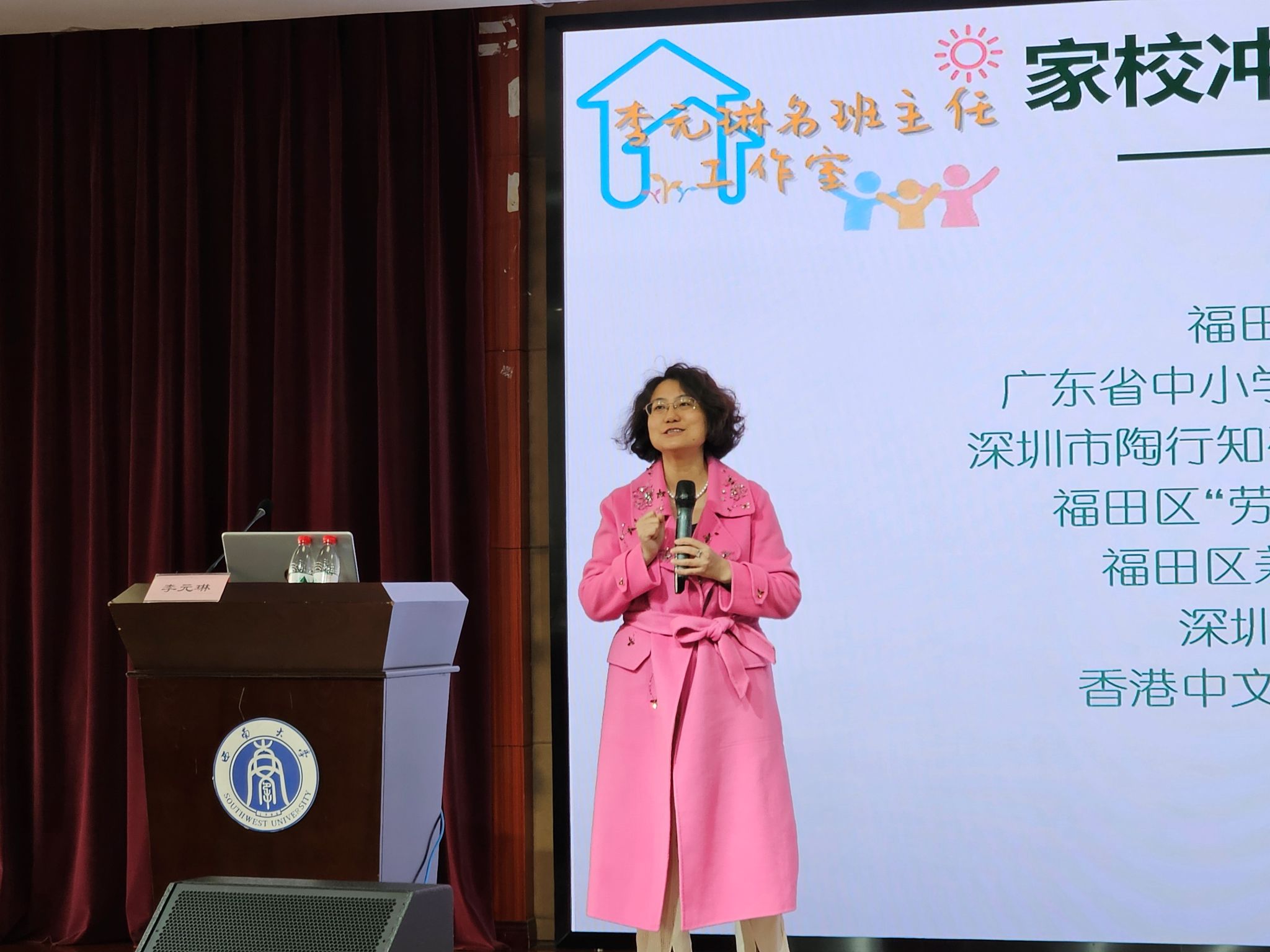 本次讲座李老师主要围绕班主任工作中的家校沟通问题展开,包括“名师分享”和“提问交流”两个环节。