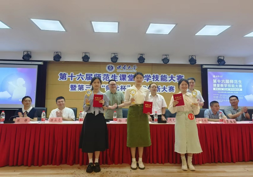 第十六届师范生课堂教学技能大赛暨第三届“师元杯”教学创新大赛决赛由学校教师教育工作领导小组、教务处、党委学生工作部、学生工作处、共青团西南大学委员会主办,教师教育学院承办,旨在培养一批具有高尚师德情操、先进教学理念、扎实教学专业能力的优秀人民教师后备力量。