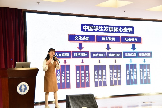 在讲座环节,主讲嘉宾刘静老师带来题为《育人目标导向下的高中英语“燃课堂”的探索和实践》的专题讲座。刘静老师从育人目标导向切入,对当今高中英语课堂的教学模式进行转型探索,并系统介绍了低焦虑课堂和燃课堂的教学模式,详细阐述了在实际教学中开展的跨学科项目式学习活动,帮助同学们在认识上实现教师从“知识传递者”到“助燃者”的角色转变。
