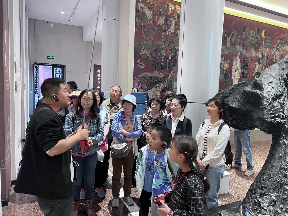 4月12日上午,教职工及家属们首先抵达广汉三星堆博物馆。在讲解员的悉心引领下,众人逐一漫步于综合馆、青铜馆等多个展厅之间。馆内珍藏的青铜神树巍然屹立、青铜面具神秘莫测、金杖熠熠生辉,这些珍贵文物凭借其独特的艺术造型与深邃的文化底蕴,牢牢抓住了每一位参观者的眼球。大家时而驻足凝视,细细欣赏文物的精美细节;时而相互交流,分享自己对古蜀文明的认识和感受。孩子们对这些充满奇幻魅力的文物展现出了极大的兴趣,他们围在讲解员身旁,不停地提出各种问题,脸上洋溢着好奇与兴奋,在探索的过程中深刻感受到了古蜀文化的独特韵味。
