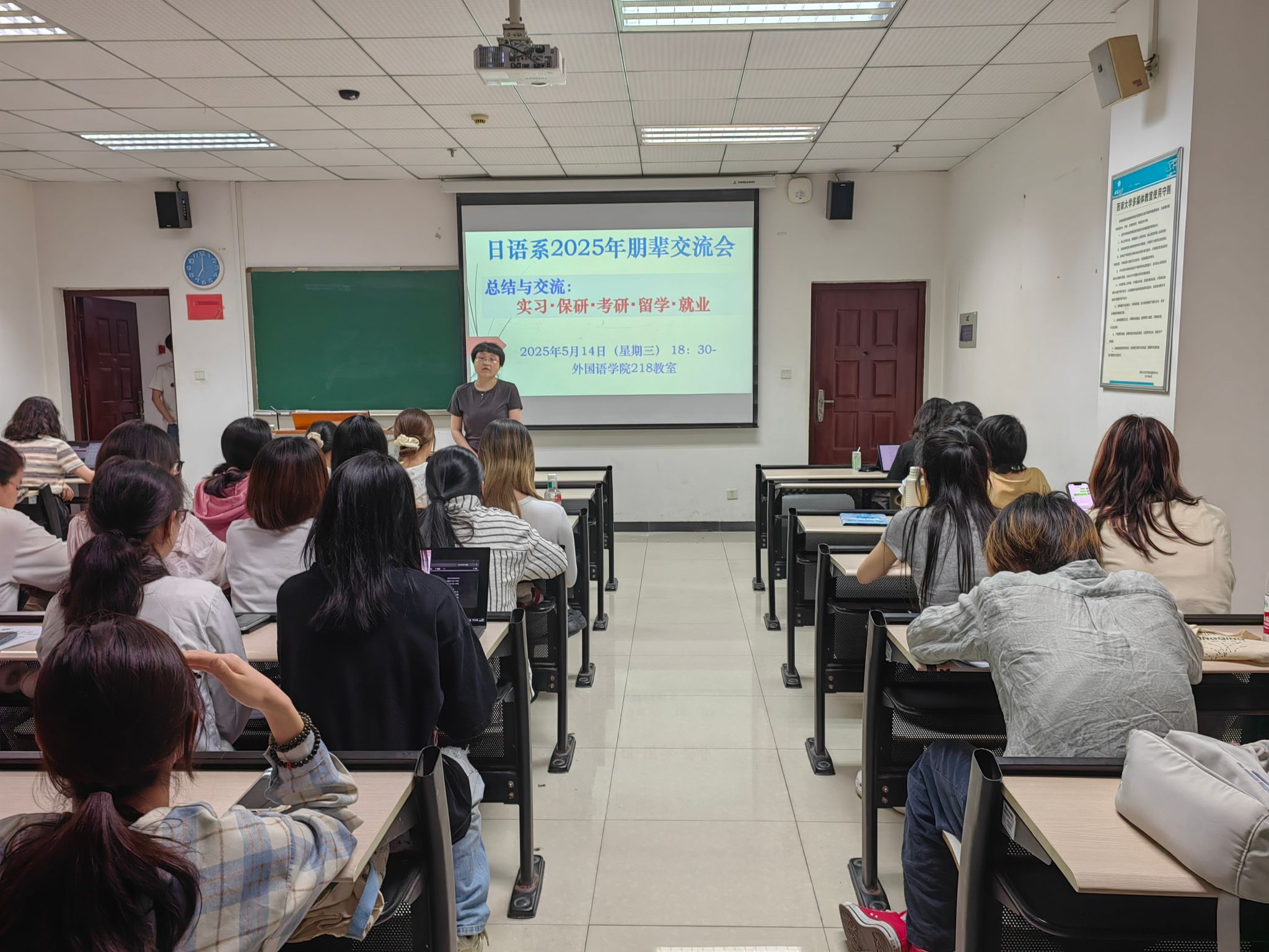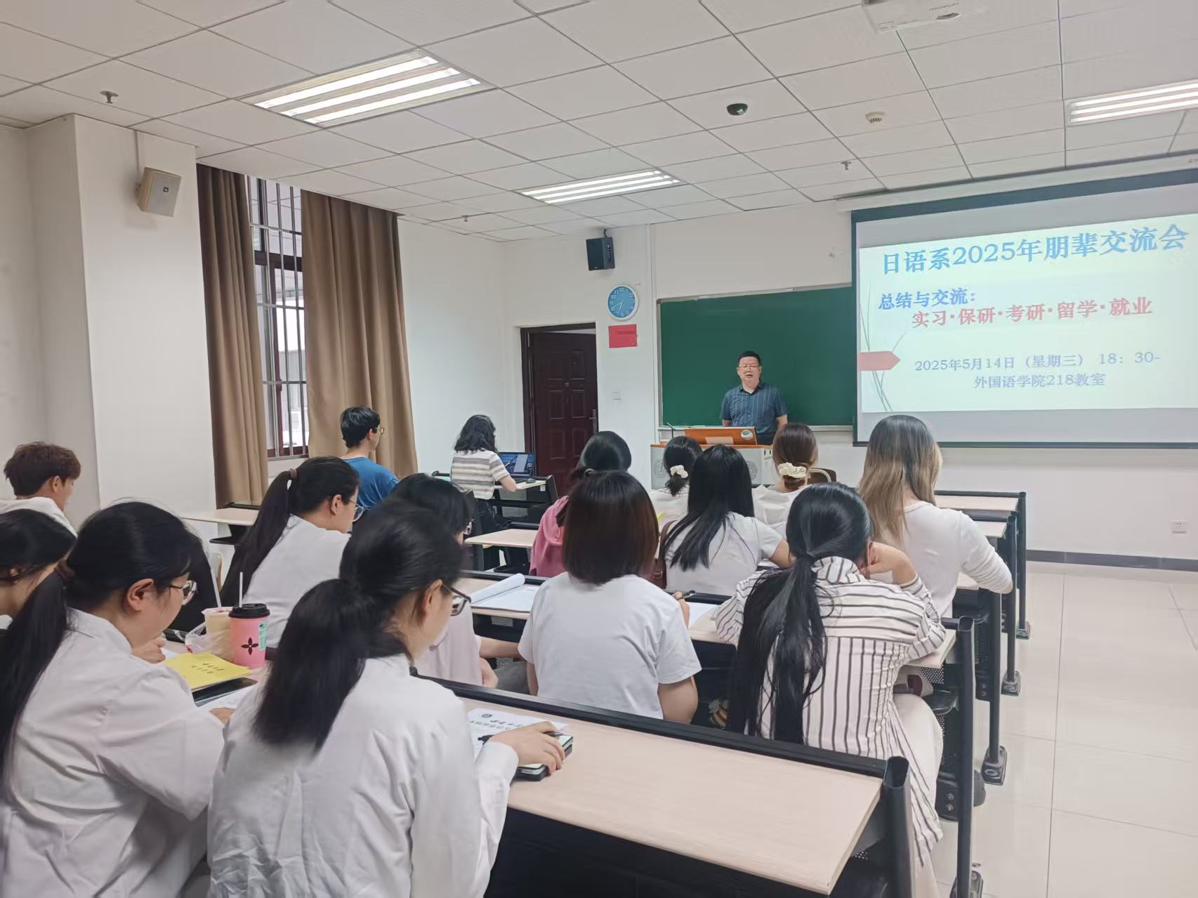 5月14日晚6:30,76net必赢官网日语系“2025年朋辈交流会”在218教室顺利举行。