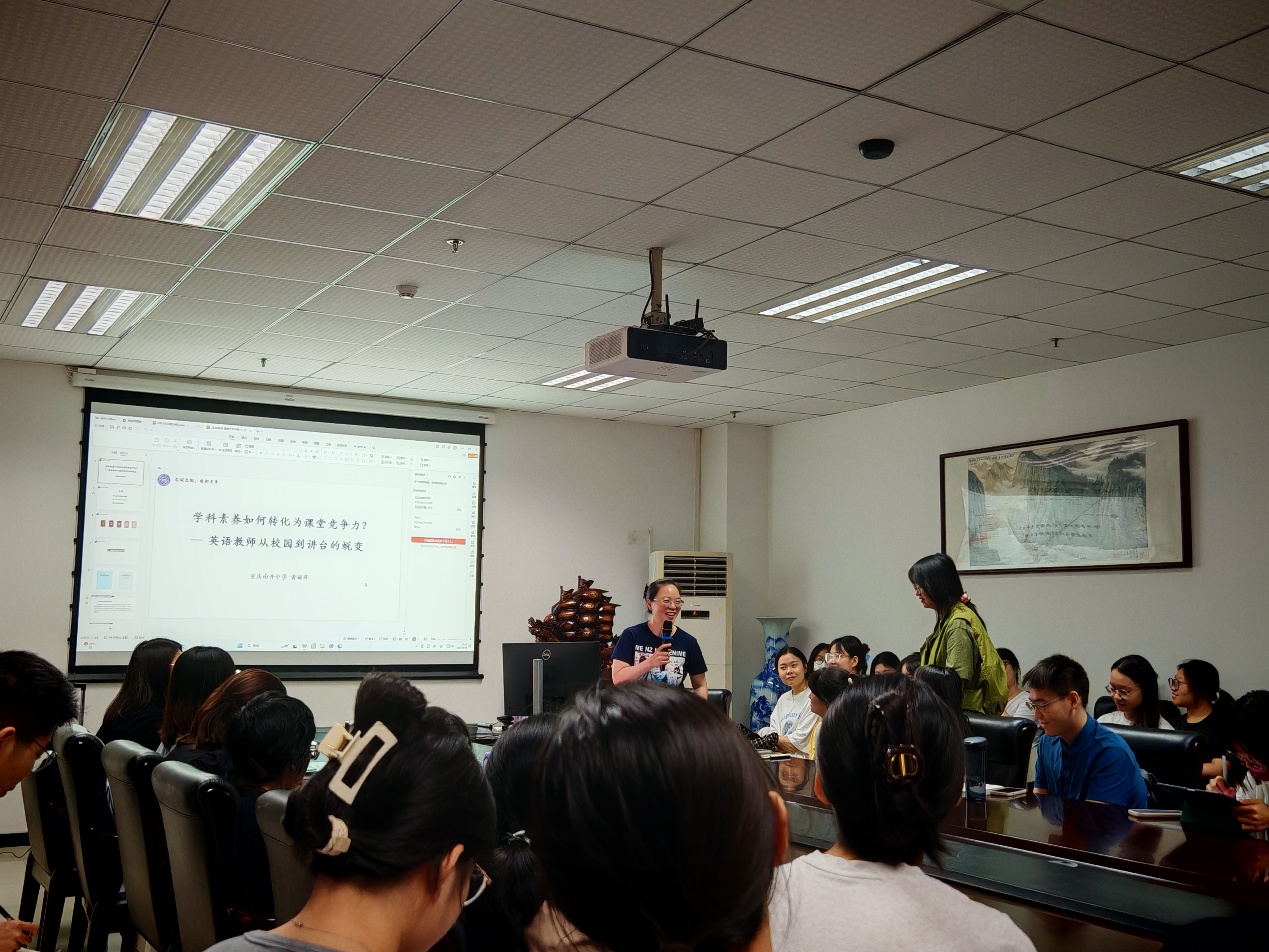 8月30日上午,重庆南开中学英语教研组组长黄丽萍老师应邀莅临我院,于313会议室为毕业生求职助力,带来了一场题为“学科素养如何转化为课堂竞争力——一名英语教师从校园到讲台的蜕变”的精彩讲座。讲座聚焦一线教学经验与教师校园时期成长路径,探讨学科素养的课堂转化机制,吸引众多学生到场聆听,现场座无虚席。活动由研究生辅导员许安琪主持。