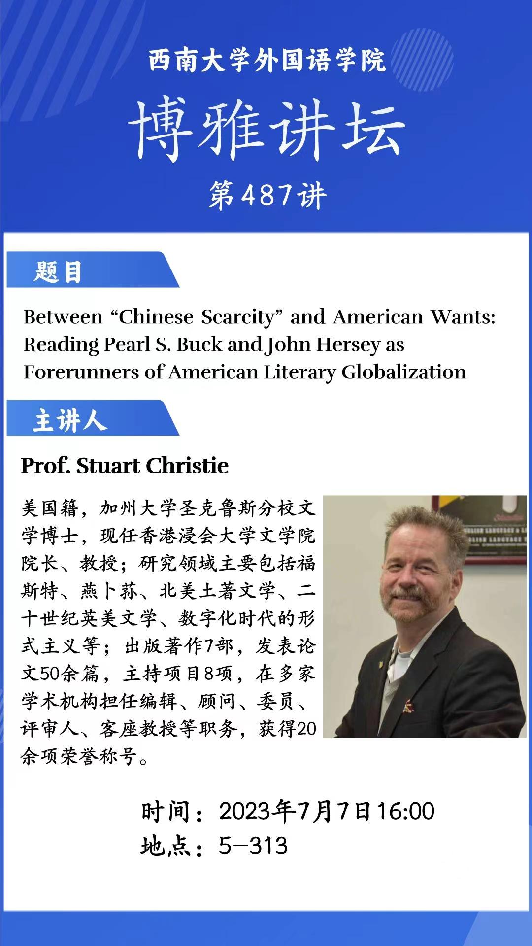 博雅讲坛第487讲:Between "Chinese Scarcity" and American Wants:Reading Pearl S.Buck and John Hersey as Forerunners of American Literary Globalization