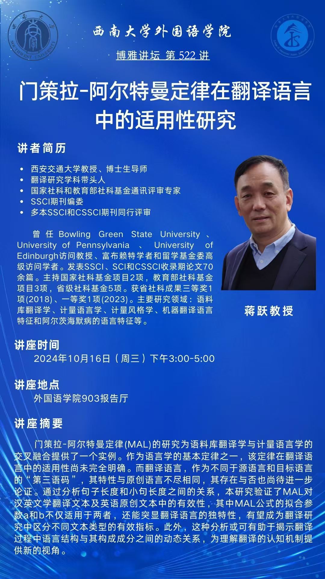 【博雅讲坛】No.522 门策拉-阿尔特曼定律在翻译语言中的实用性研究
