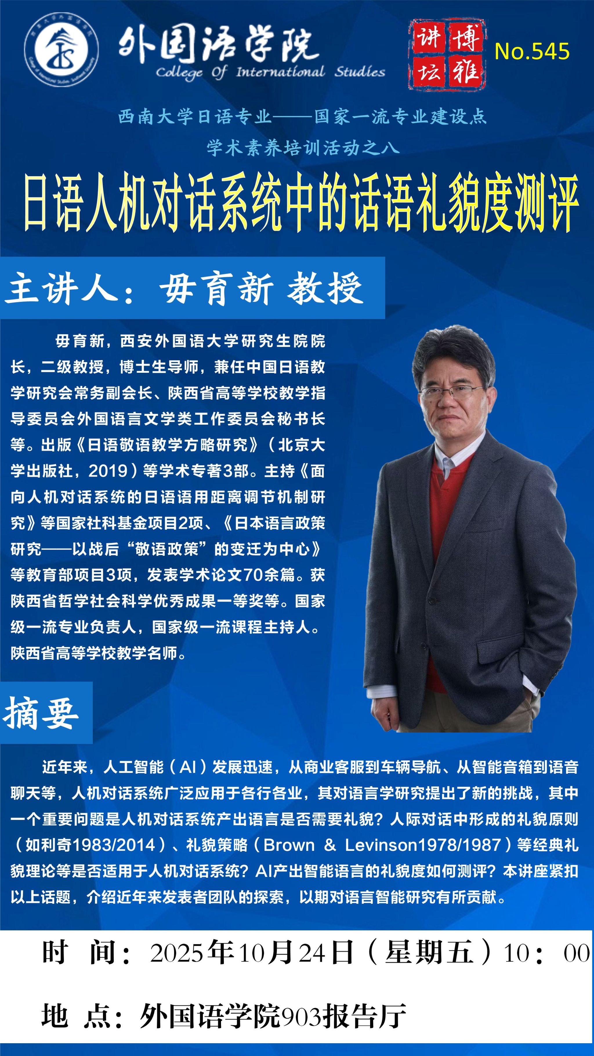 博雅讲坛545讲 日语人机对话系统中的话语礼貌度测评