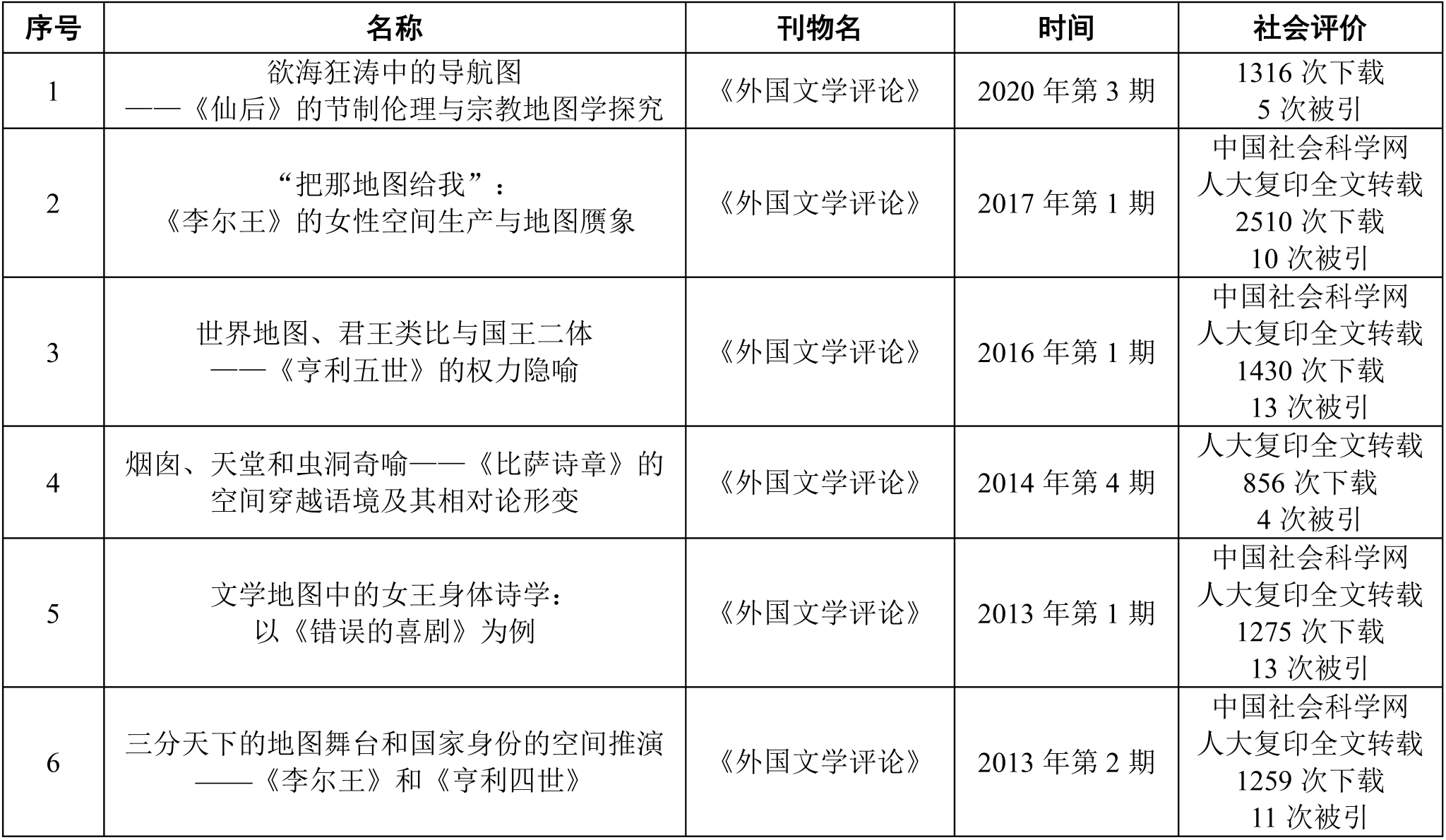 学术论文:权威期刊论文6篇(2013-2020年)(截止到2025.8.28,下同)