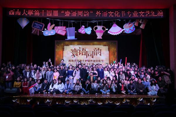 西南大学外语文化节走过了她的第十四年,一如既往地引领观众聆听多种多样的语言,感受多国文化,为学院各语种专业学生和全校外语学习爱好者提供了学习交流和锻炼展示的舞台。