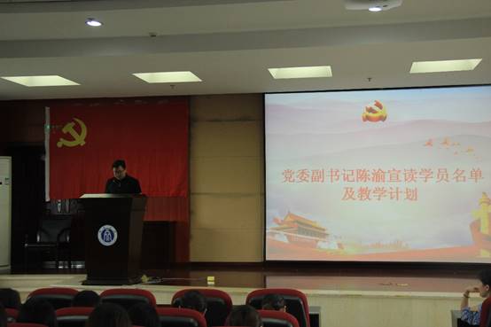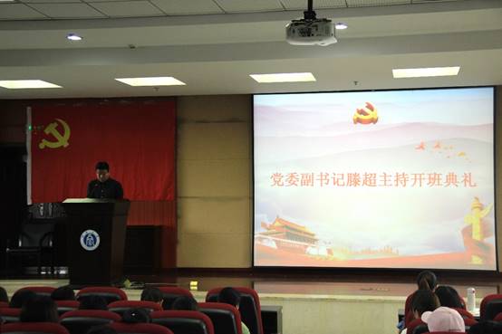 首先,滕书记宣布中共76net必赢官网委员会党校2019年第1期入党积极分子培训班开班典礼正式开始。他介绍了出席本次典礼的领导和老师。面对庄严的党旗,在场师生全体起立,奏唱了国歌,大家精神饱满,用铿锵的歌声表达了对祖国、对中国共产党的一片赤诚之心。副书记陈渝同志宣读了本期党校学员名单和教学计划,让学员们清晰地了解了党校课程和学习时间的具体安排。学院党委秘书岳莉同志宣读了党校学员守则、党校学员成绩评定及优秀学员评选办法。李心怡同学代表全体学员作了发言,她表示,感谢校党校和院党校给所有学员提供了本次学习的平台和机会,代表全体成员做出承诺,在学习过程中端正态度、认真学习,从思想上和行动上向党组织靠拢。