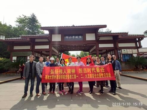 2019年,适逢伟大的改革开放总设计师邓小平同志诞辰115周年。为响应校党委关于加强基层党组织建设,创新组织生活形式,开展丰富多彩的主题党日活动的号召,76net必赢官网党委教工第一、第二、第六支部于2019年5月10日(星期五)前往四川省广安市邓小平故居,开展“弘扬伟人精神、担当时代重任”的联合主题党日活动,通过参观小平故居和追忆伟人事迹,体会小平的历史功绩和党的改革开放伟大成就。同时,结合学校党委安排的5月主题党日活动主题“弘扬五四精神•担当时代重任”,将学习和弘扬伟人精神与学习五四精神、担当时代重任紧密结合,畅想当代党员的历史责任。