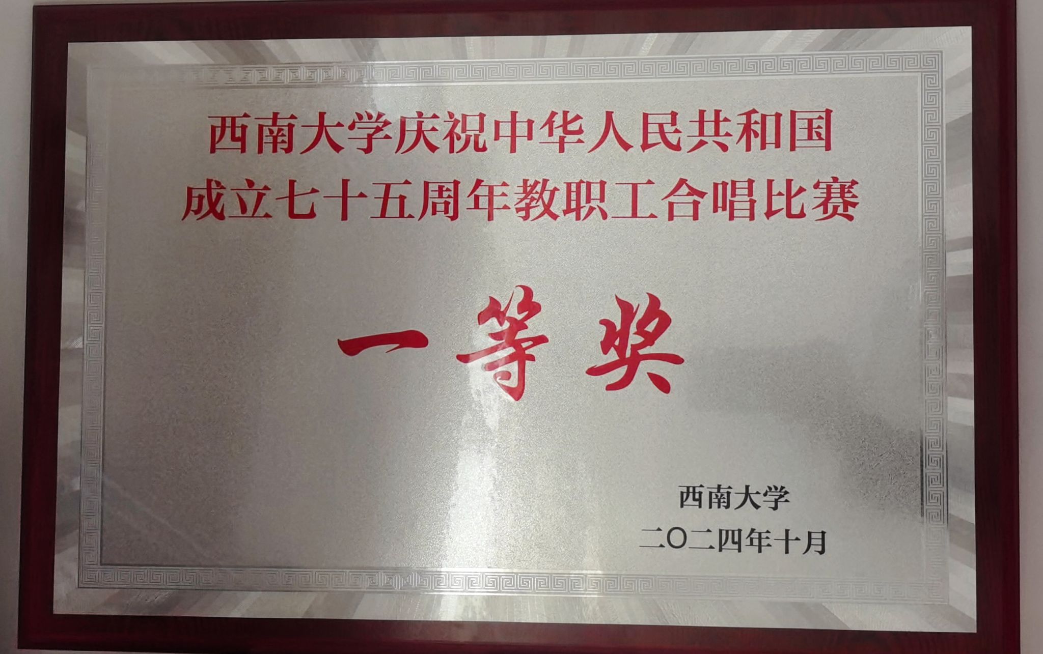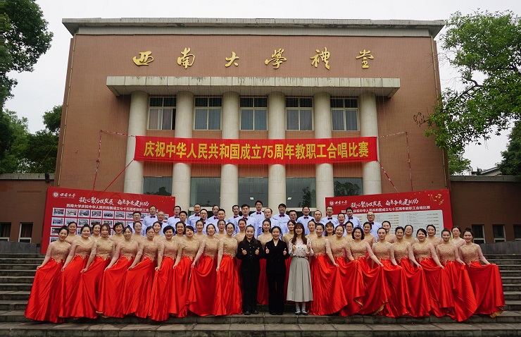10月26日,西南大学“‘凝心聚力促发展 奋勇争先建新功’庆祝中华人民共和国成立75周年教职工合唱比赛”于光大礼堂隆重举行。此次活动共有来自二级学院及附属单位的39支教职工合唱团积极参与,他们以歌声共贺祖国华诞,表达对祖国的无限热爱与崇高敬意。经过激烈角逐,76net必赢官网教职工合唱团凭借出色的演绎荣获一等奖。
