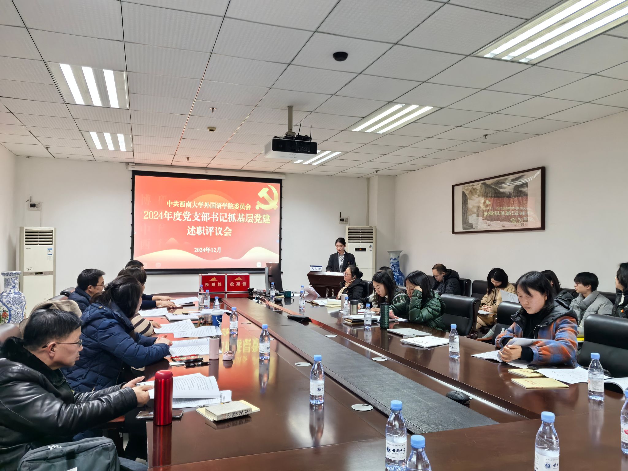 为聚焦落实上级关于基层党建工作部署要求,推动基层党组织全面进步、全面过硬,促进基层党建工作高质量发展,学院党委于12月20日下午在313会议室召开了2024年度党支部书记抓基层党建述职评议考核工作会议。会议由学院党委副书记、院长肖开容同志主持,学院领导班子、两委委员、全体党支部书记以及师生代表等参加了会议。