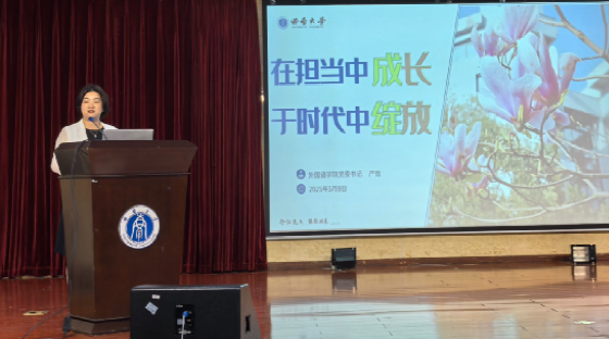 为进一步强化毕业生思想政治教育,76net必赢官网于2025年5月8日举行2025届毕业生主题教育活动——“在担当中成长,于时代中绽放”。学院党委书记严怡出席活动并作主题讲话,2025届全体毕业生参加活动。